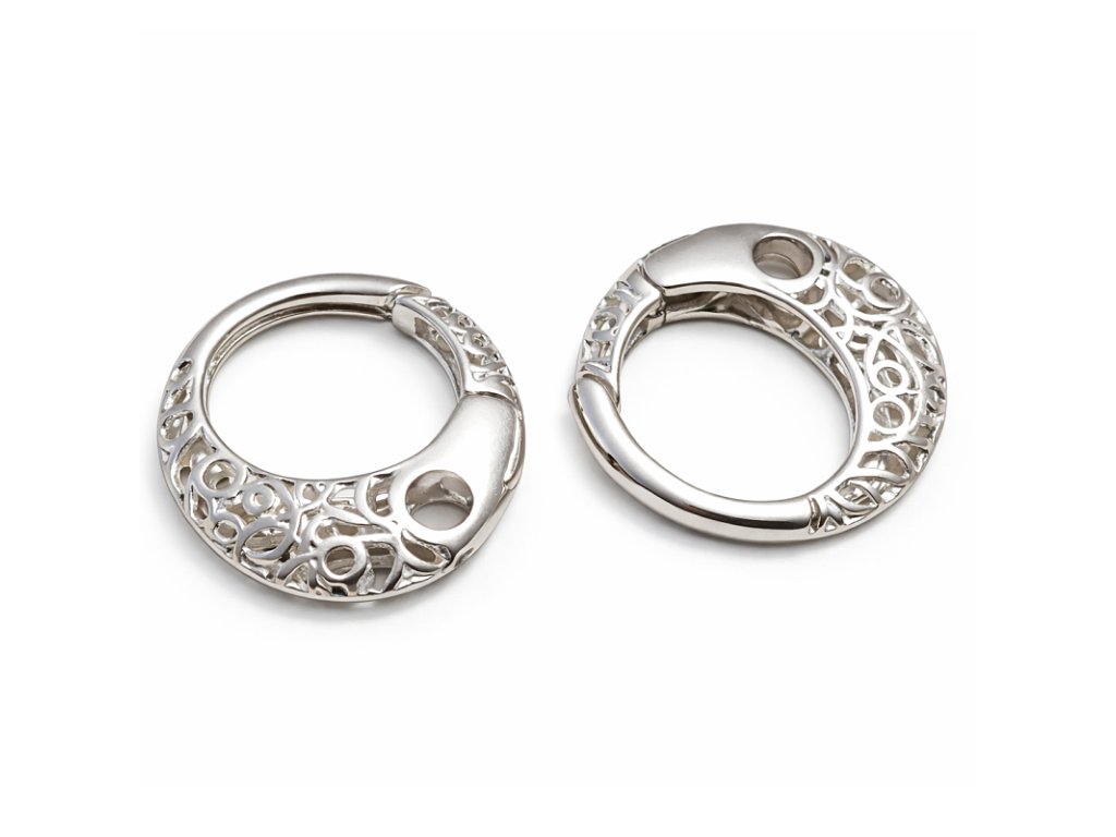 Karabinka zdobená filigránem - zapínání Ag 925. Průměr 19mm. Cena za 1ks.