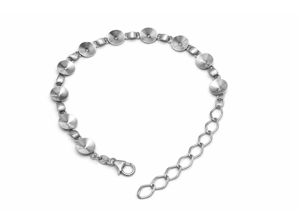 Náramek pro rivoli ss39 Ag 925/1000 - 5,3g. Značeno státním puncem. Sestává se z 10ks misek. Celková délka 17 + 4,5cm adjustační řetízek.