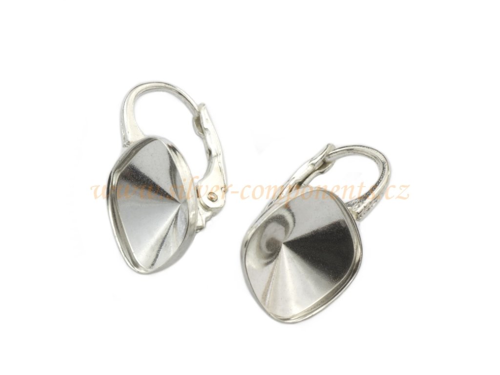Náušnicové zapínání - anglický háček s miskou pro Swarovski Rounded Square 4470 velikosti 10mm Ag 925/1000, celková výška 20mm.Cena za 1 ks.