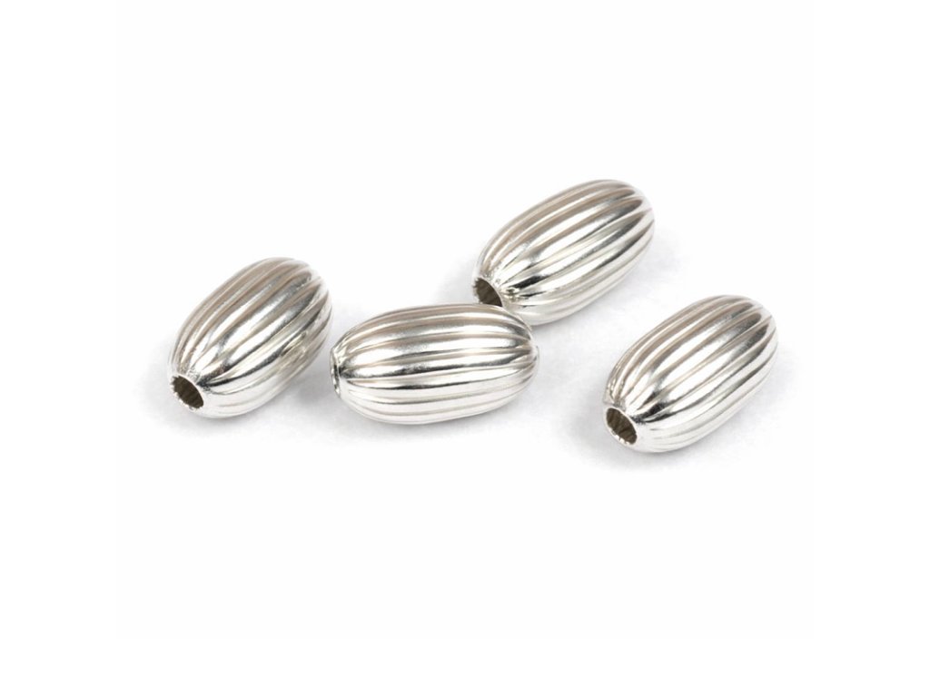 Oliva vroubkovaná Ag 925Cena za 1ks. Rozměry : průměr 4,00 mm; otvor 1,30 mm; délka 6,70 mm.Buďte první, kdo napíše příspěvek k této položce.