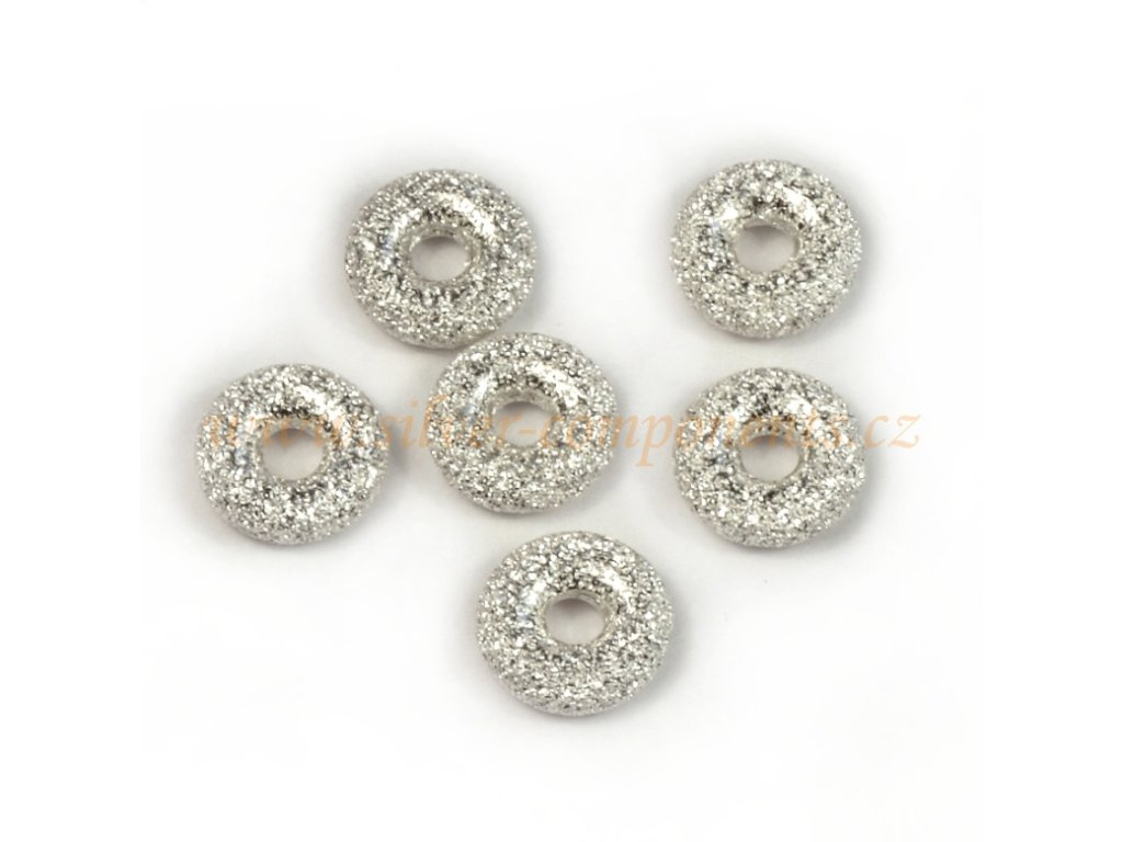 Rondelka s diamantovým povrchem, průměr 3,2 x 1,6mm, Ag 925. Otvor průměr 1,1mm. Cena za 1 ks.