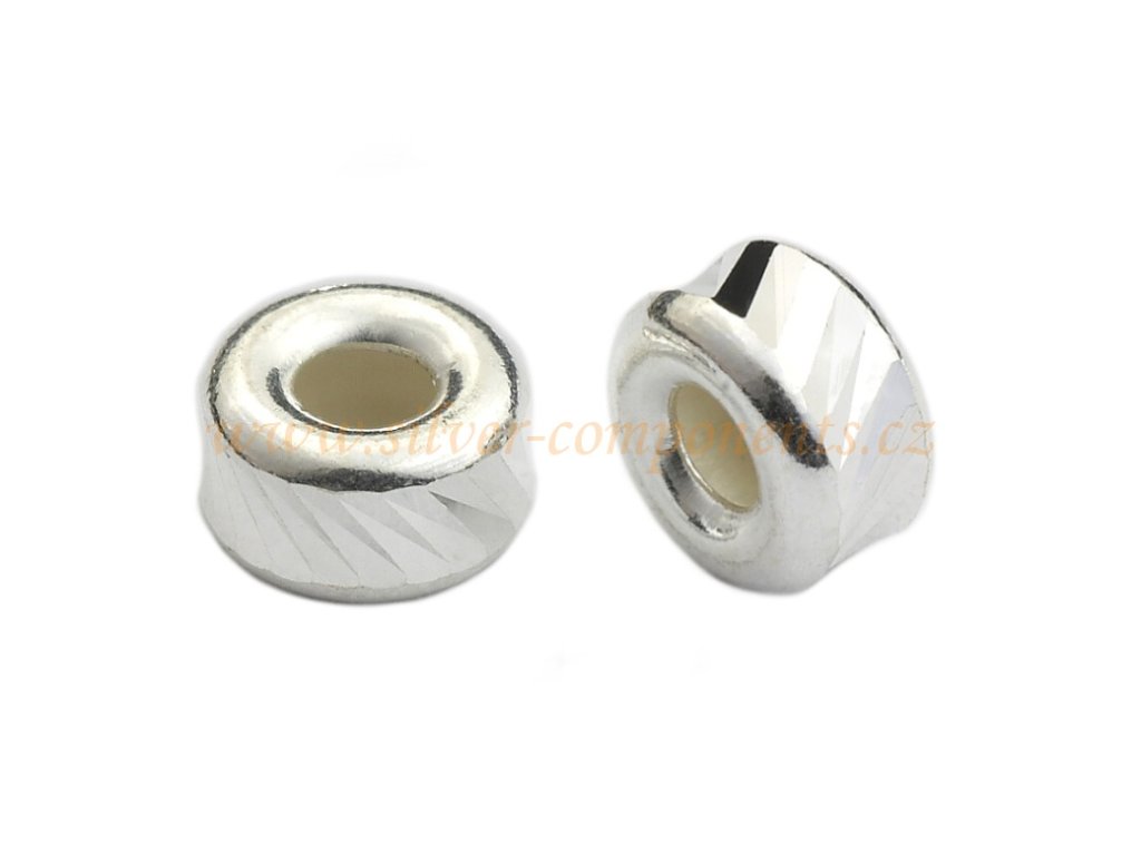 Rondelka se sekaným vzorem 3,2 x 1,5mm, Ag 925. Otvor průměr 1,1mm. Cena za 1 ks.